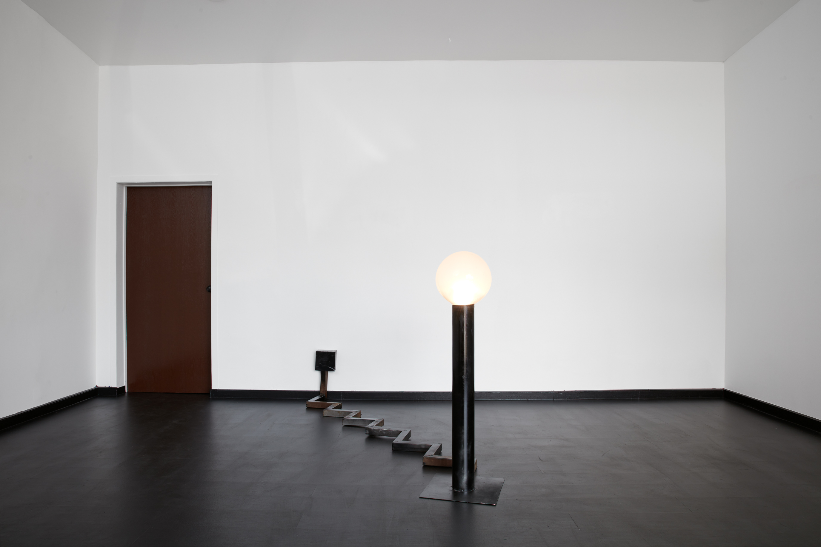 Blown glass, steel, hardware.