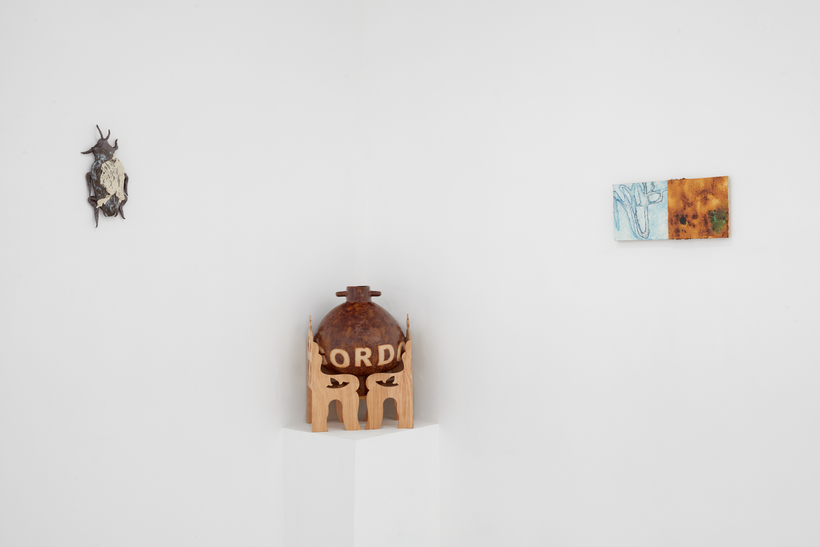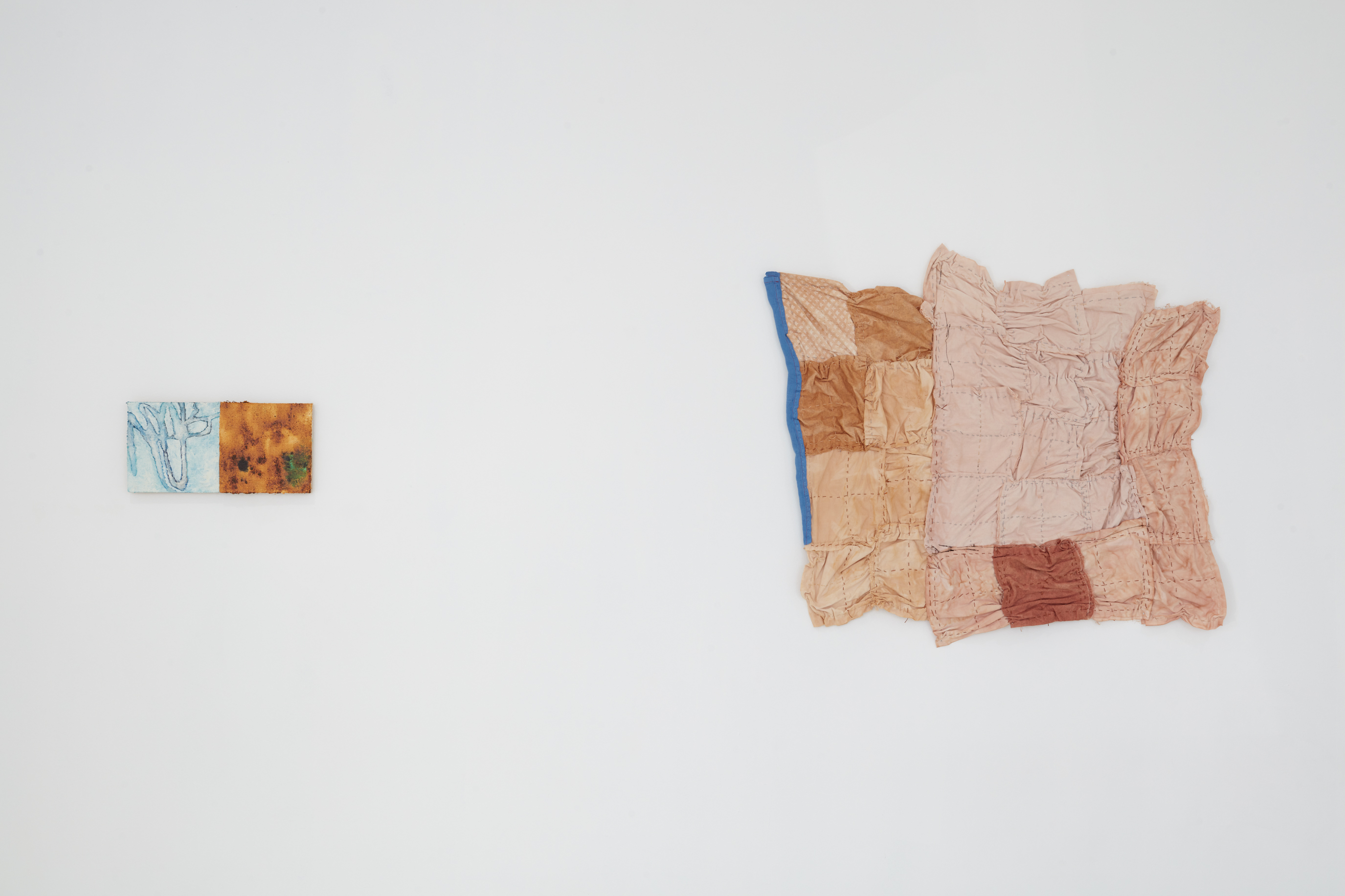 Cotton, wool, terra cotta, copper, non-human collaborators (chia seeds, agents of decay).
