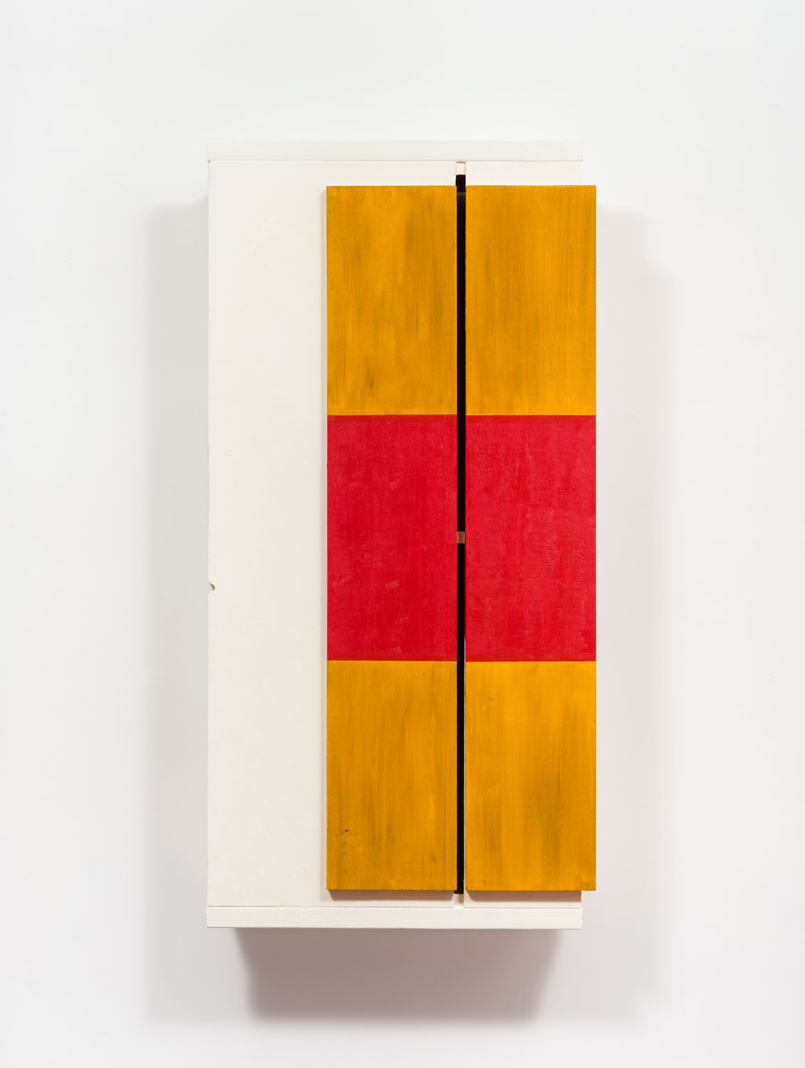 Maki’s handmade box like forms populate the space as metaphoric monuments to bugs, places and things. Traversing an array of aesthetic monomers, she leads us to safe zones. The tea box is a storage box, a time capsule perhaps to travel into the future while remaining in the present. Taking us to some of her influences like Jo Baer, Clyfford Still, Sean Scully and Deborah Remington.